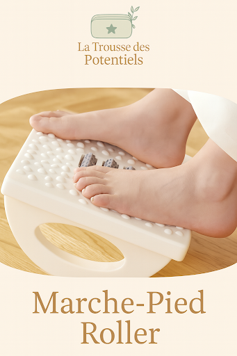 Ce repose-pieds innovant, muni de rouleaux massants ajustables, se glisse sous le bureau ou la table. Il invite au mouvement tout en douceur, offrant un ancrage discret et agréable lors des moments d’apprentissage ou de concentration. Le coloris est aléatoire, pour une petite surprise à chaque ouverture de colis, apportant une touche de personnalisation ludique et captivante.
